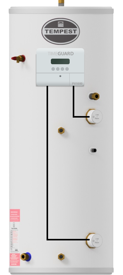 Tempest Indirect hot water storage cylinders feature an internal coil and are designed for use with a gas or oil-fired boiler, as the main heat source (either sealed system or open vented). Manufactured from Duplex stainless-steel, the cylinders are supplied with a factory-fitted 3 kW immersion heater to provide back-up heat. With the PV1000 it enables you to harness the energy from your solar panels to generate hot water for free.